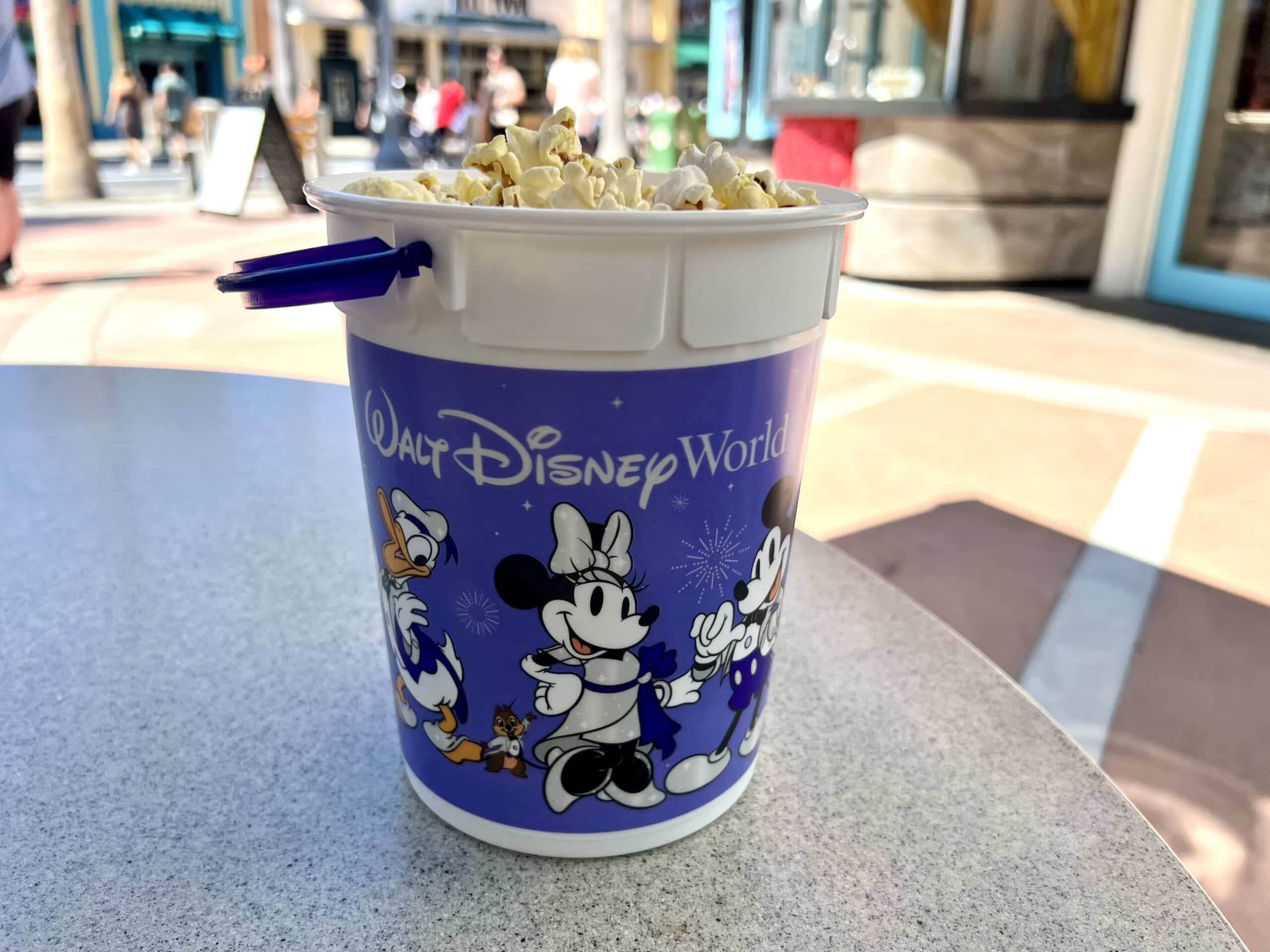We’ve been using the same bucket for close to 3 years now. Fresh popcorn costs $6-7 in the parks. New themed buckets run $15-30. But with an old bucket, you pay just $2 for the same popcorn.
