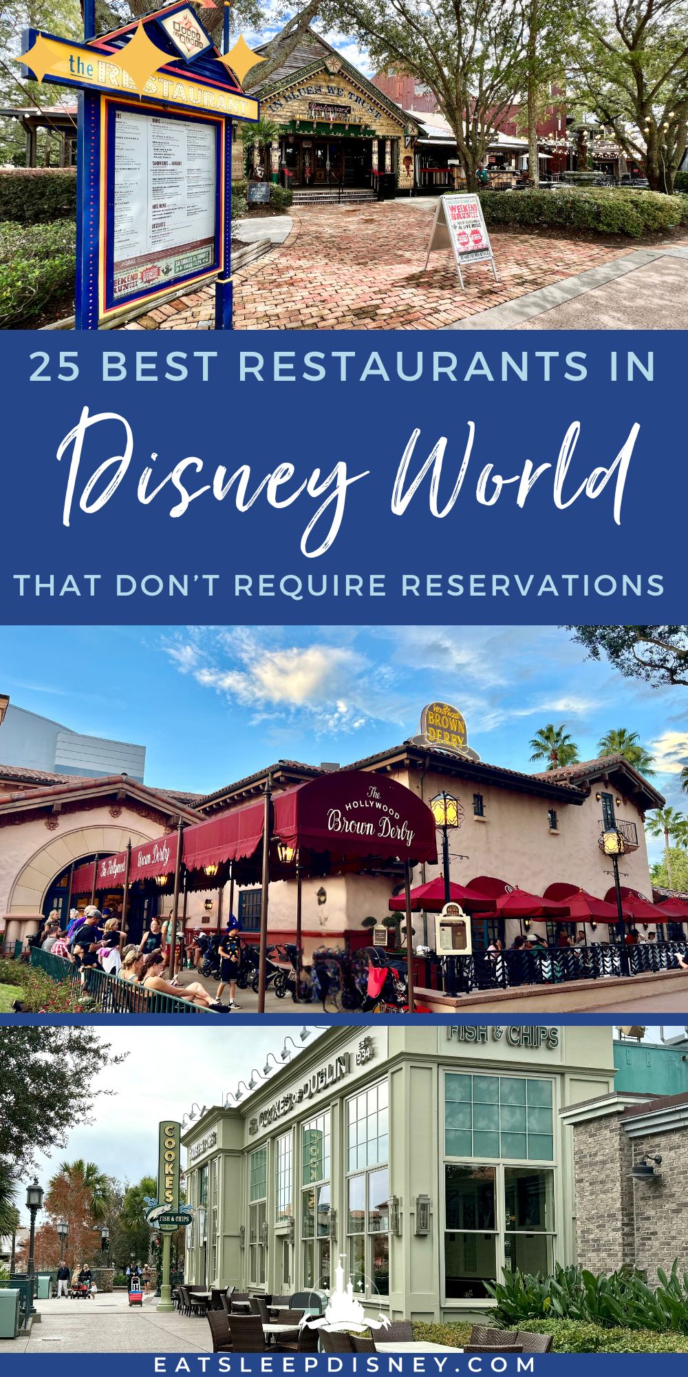 Whether you’ve entirely forgotten to make dining reservations or prefer to have a more flexible schedule and only stop when you simply can’t go another minute without food, here are the 25 BEST Walt Disney World restaurants you can eat at WITHOUT reservations!