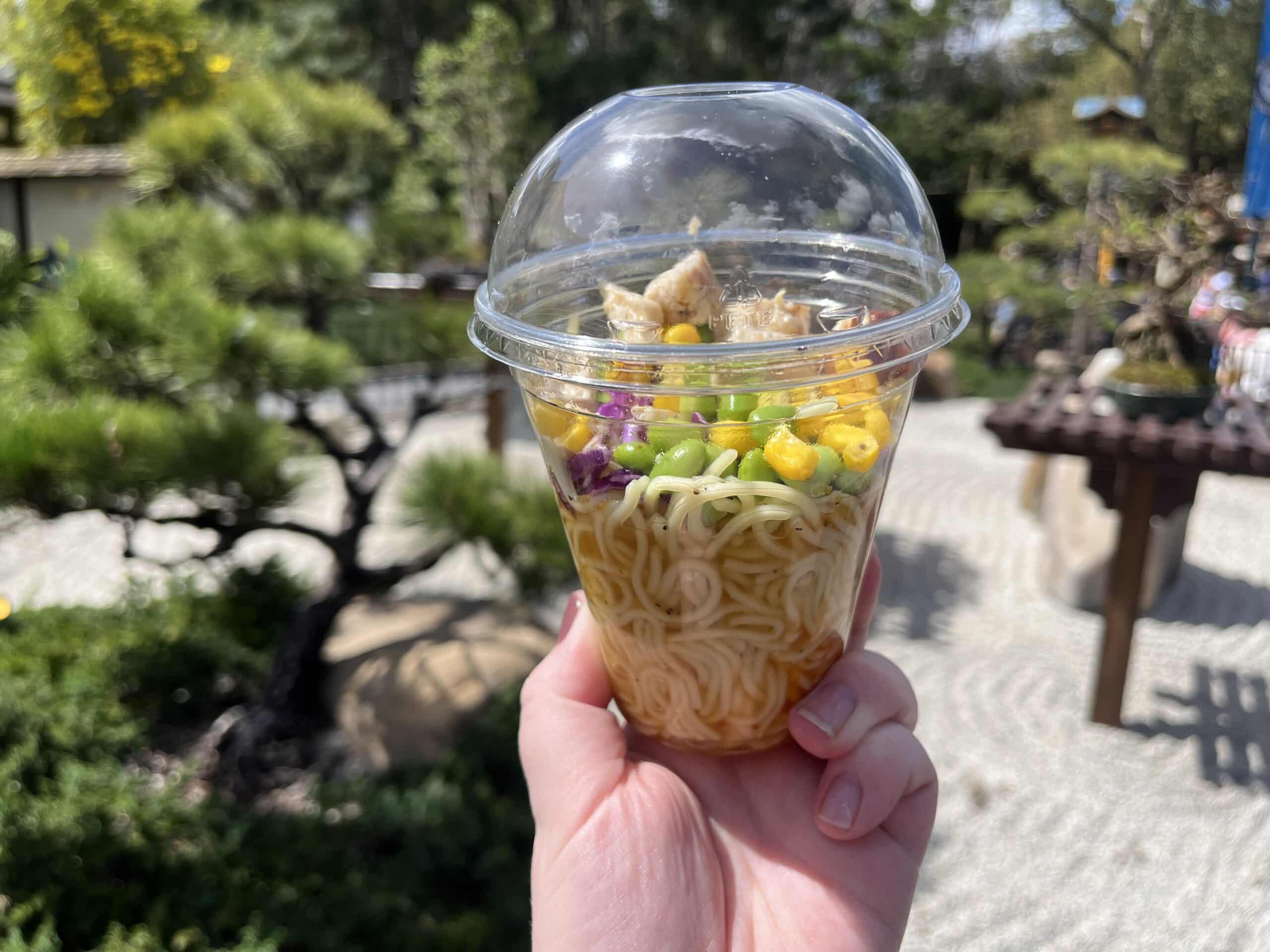This dish is the most expensive dish on our list so far, but it could be a full meal itself. So, it’s worth the price. Served chilled, the cup contains ramen noodles, grilled chicken, edamame, corn, vegetables, and a vinaigrette.Β