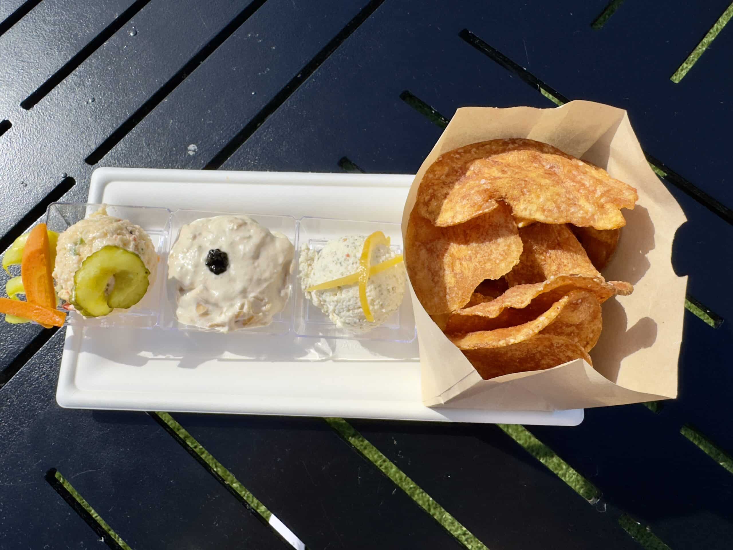 These chips are a great shareable snack if thatβs your gameplan. I think the pimento cheese dip was my favorite out of the three, however, theyβre all tasty! For those with littles, this is the perfect treat to grab and take a seat outside the Playalong Bay Playground – back for 2026.