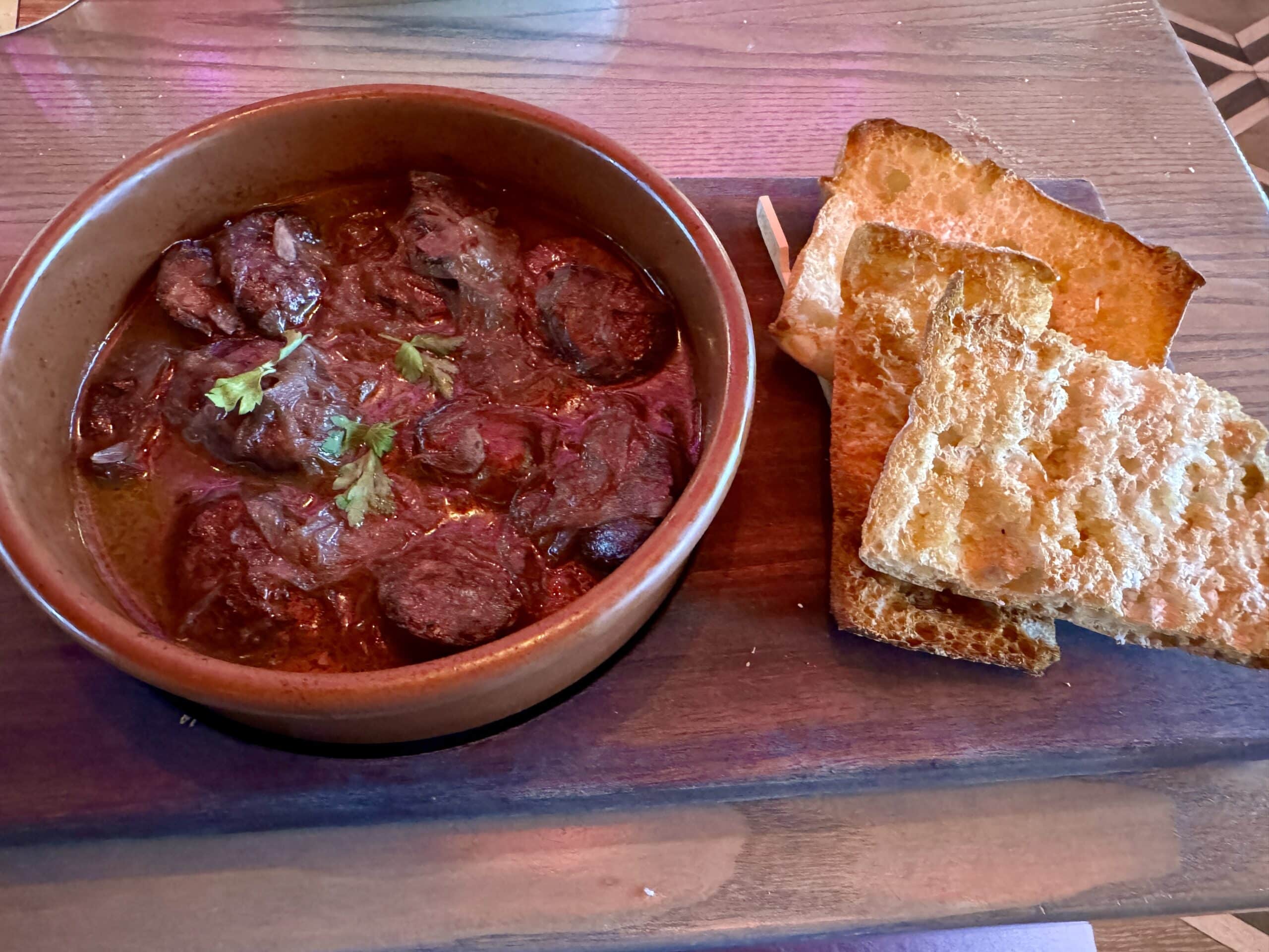 Menu options include charred octopus, pan con tomate, marinated olives, and more for tapas. Entree options include rib-eye, braised chicken, and pork chops, just to name a few. Shareable sides are also available to round out the meals.